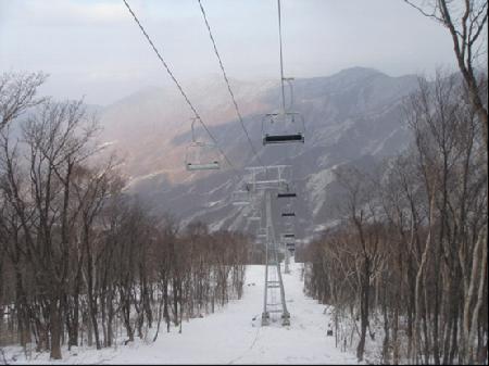 2014年1月竣工完成。索道位于朝鮮江原道元山市馬息嶺滑雪場(chǎng),型式為單線循環(huán)固定抱索器四人吊椅式,線路水平距離417.747米,高差50米,單向小時(shí)運(yùn)量800人,運(yùn)行速度為2米/秒。